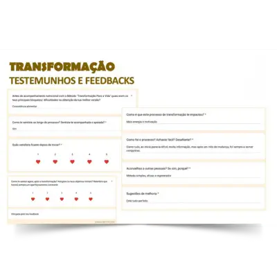 O método “Transformação para a Vida” nada mais é que uma viagem ao teu ser, onde te ensino como desbloquear o teu verdadeiro potencial, para que possas alcançar os teus objetivos e criar uma nova vida que reflita a tua essência.
